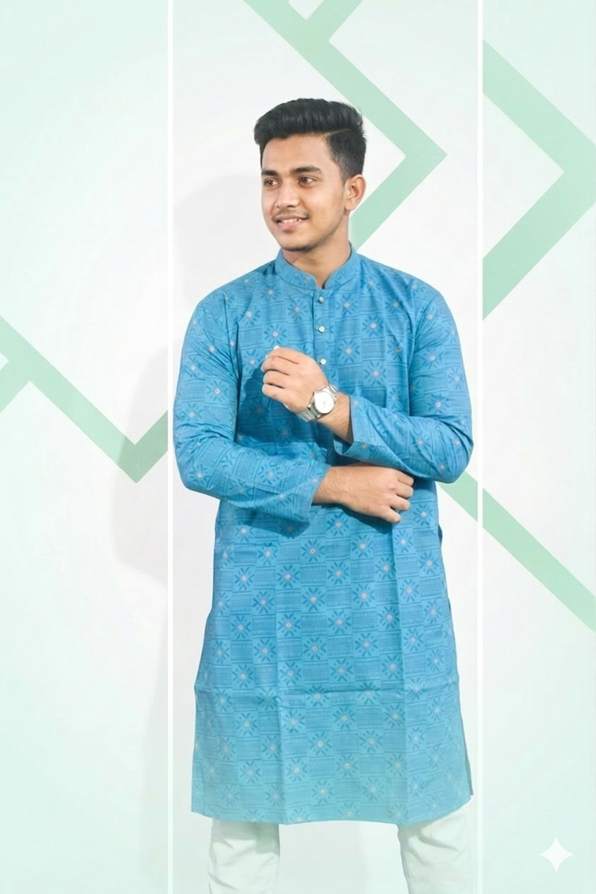 • ডিজাইন: সম্পূর্ণ পাঞ্জাবি স্ক্রিন প্রিন্ট করা, যা দেখতে আকর্ষণীয় ও মার্জিত