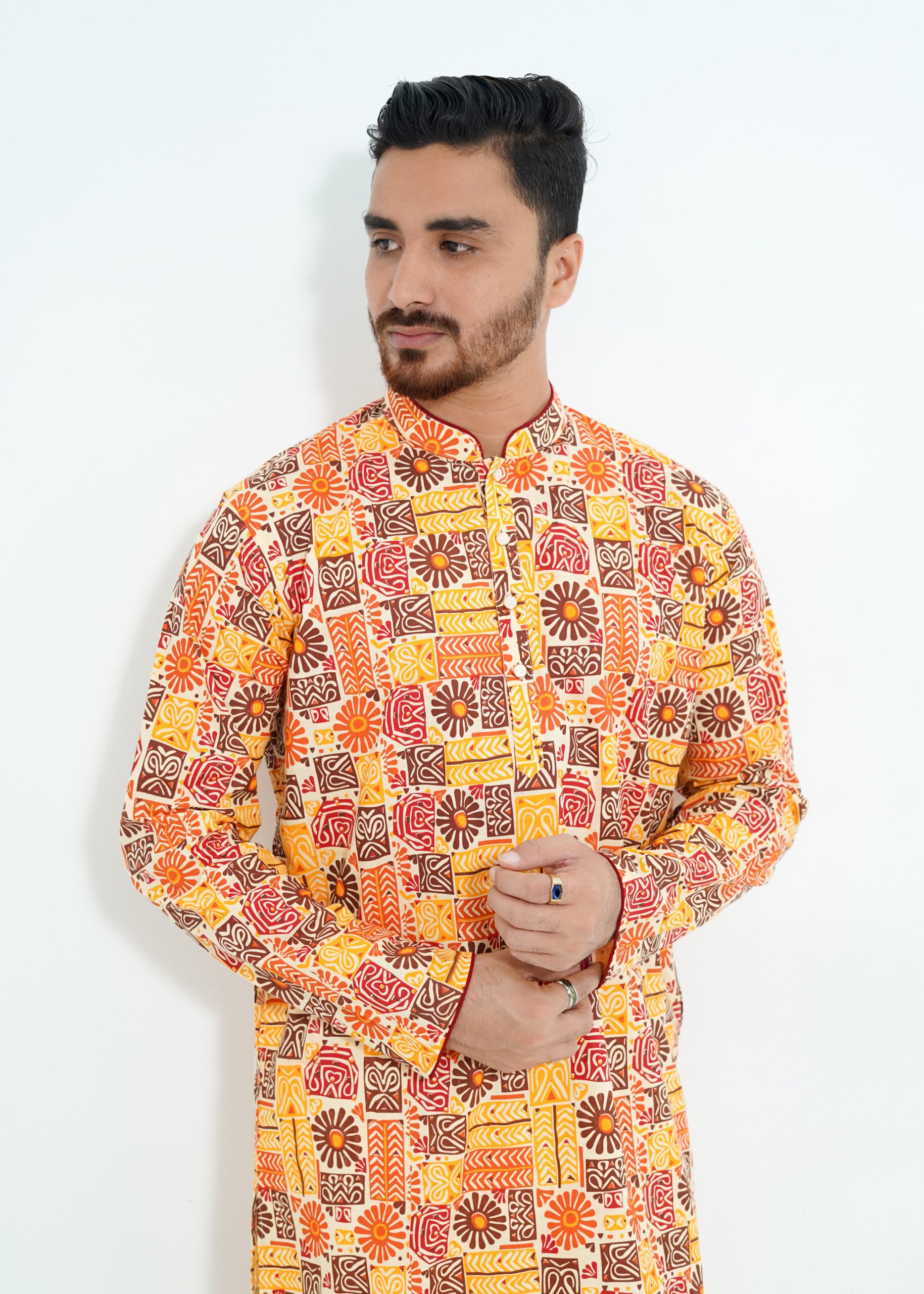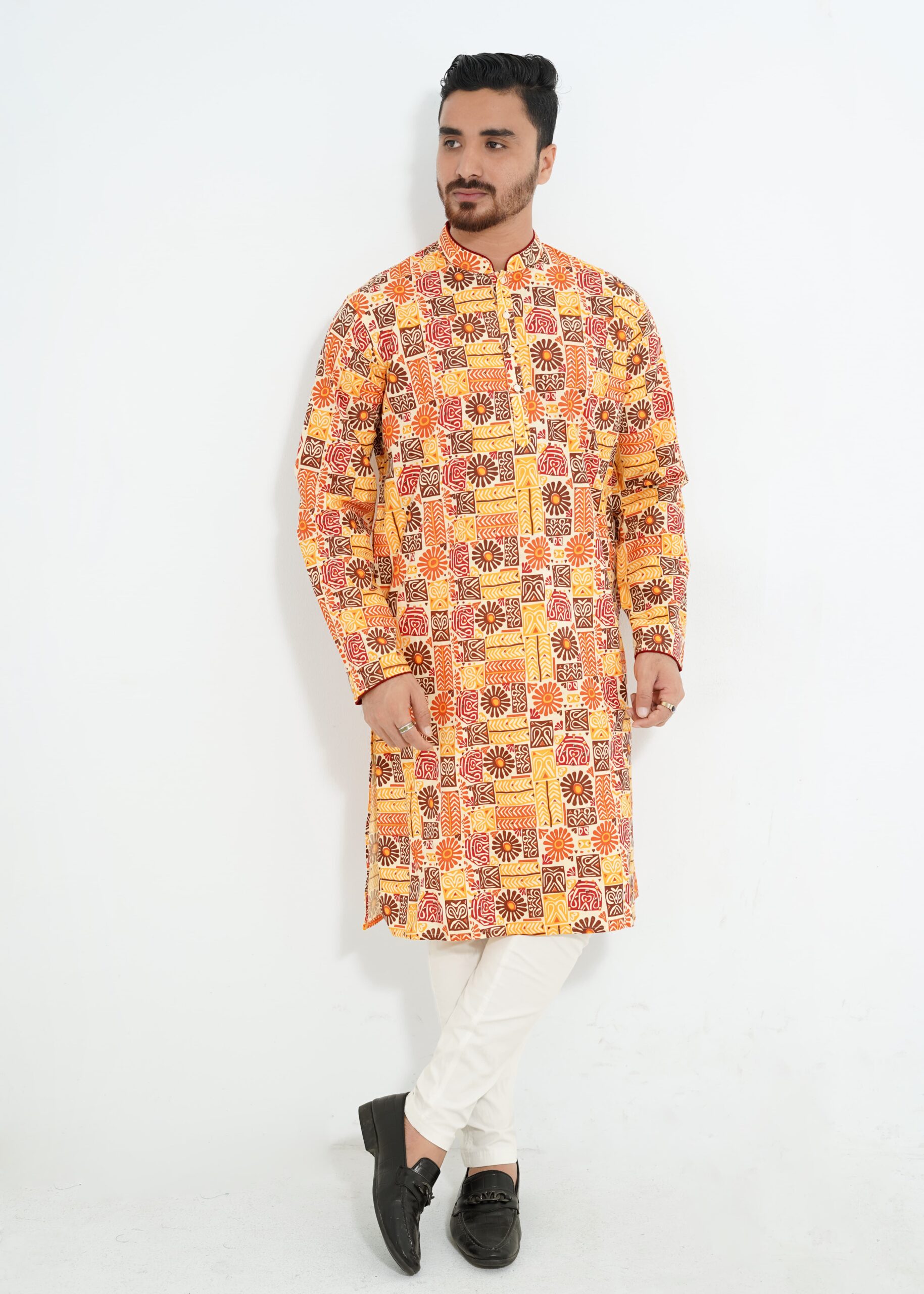 PREMIUM COTTON SCREEN PRINT PANJABI (Code B-005)
