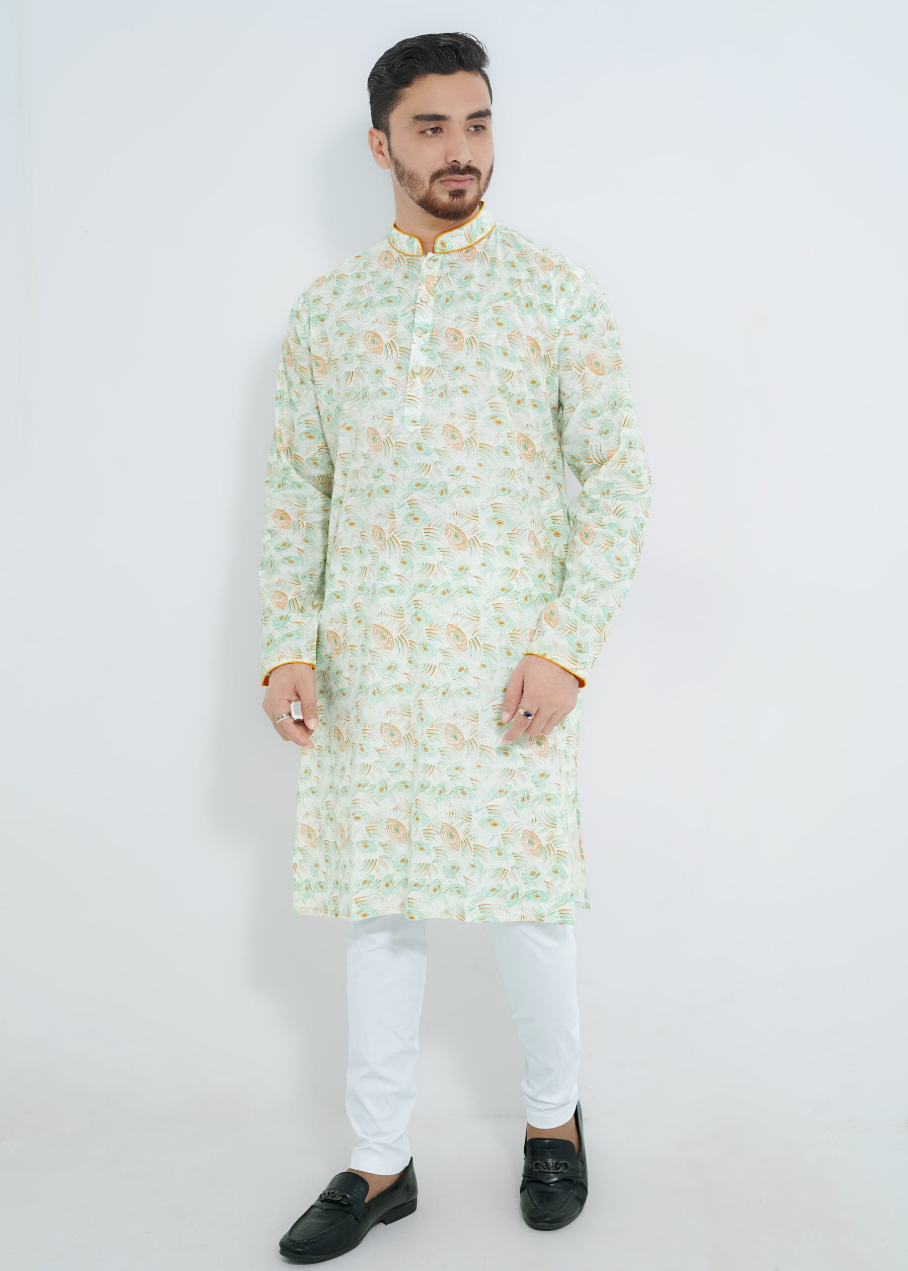 ডিজাইন: পুরো পাঞ্জাবি ডিজিটাল প্রিন্টেড, যা আপনাকে দিবে আকর্ষণীয় ও মার্জিত লুক।