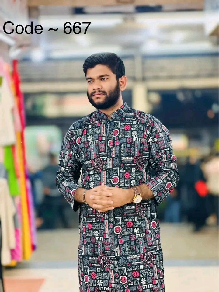 ডিজাইন: পুরো পাঞ্জাবি ডিজিটাল প্রিন্টেড, যা আপনাকে দিবে আকর্ষণীয় ও মার্জিত লুক।